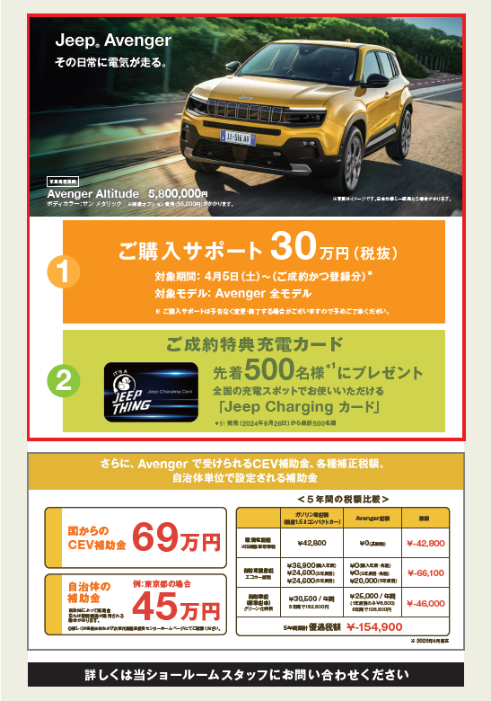 ジープ アベンジャー 購入サポート |